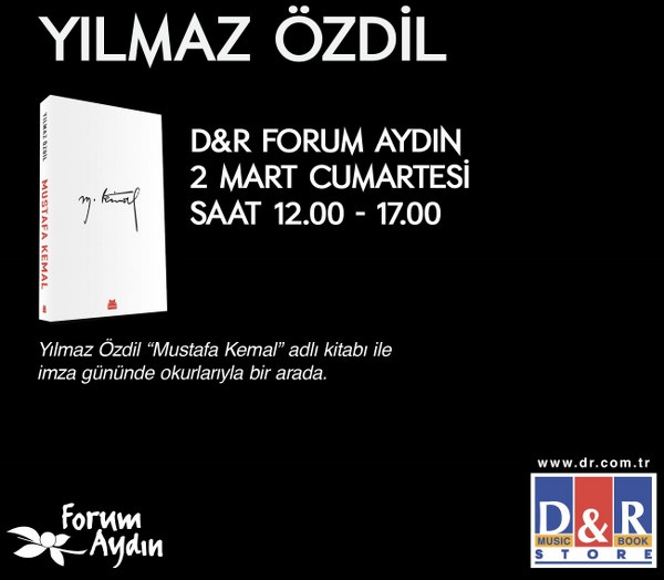 Aydınlıların buluşma noktası Forum Aydın, 2 Mart 2019 Cumartesi günü gerçekleştirilecek imza günü etkinliği kapsamında Yılmaz Özdil'i ağırlayacak. Saat 12.00 – 17.00 arasında Forum Aydın D&R mağazasında hayranları ile buluşacak olan Özdil, başta son kitabı “Mustafa Kemal” olmak üzere tüm eserlerini okurları için imzalayacak.
