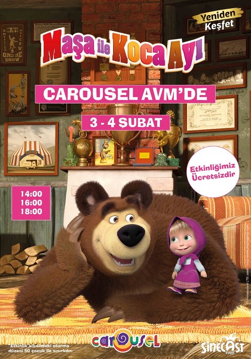 Carousel Alışveriş ve Yaşam Merkezi, çocukları heyecanla bekledikleri etkinliklerle buluşturmaya devam ediyor. Sevilen çizgi film karakterleri Maşa ile Koca Ayı, 3-4 Şubat tarihinde muhteşem sahne şovlarıyla Carousel Sahne’de.
