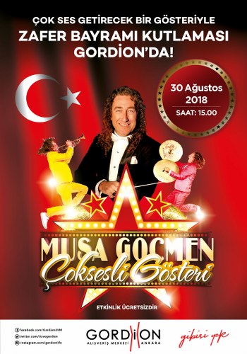 Ankara'nın gözde alışveriş merkezi Gordion AVM, bu yıl 30 Ağustos Zafer Bayramı'nda tüm ziyaretçilerine Musa Göçmen'in benzersiz gösterisini armağan ediyor.
