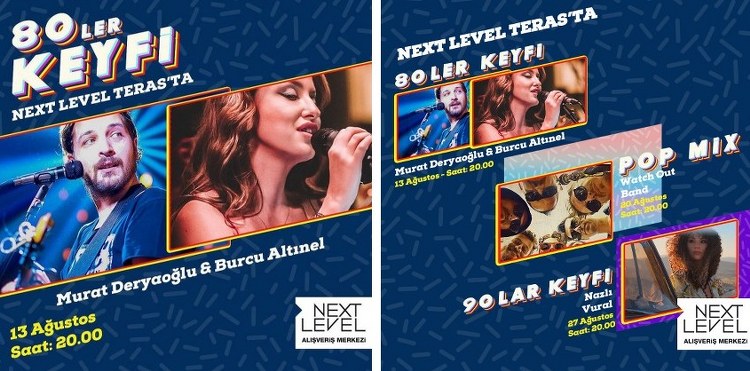 Next Level AVM, 80’ler, Pop Mix ve 90’lar konseptleriyle düzenlediği Teras Konserleri ile ziyaretçilerini müzik ve eğlenceye davet ediyor; nostaljik konserlerde bu haftaya 80’li yıllar damgasını vuracak