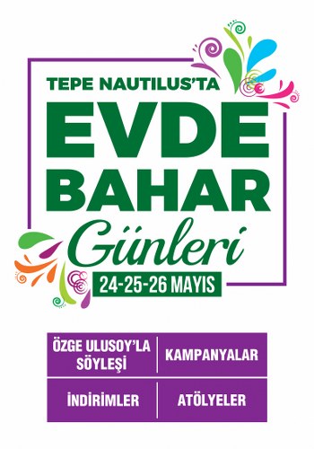 Tepe Nautilus, 24-26 Mayıs tarihleri arasında Evde Bahar Günleri’ne ev sahipliği yapıyor. Üç gün sürecek Evde Bahar Günleri, Tepe Nautilus ziyaretçilerini ev, dekorasyon ve beyaz eşya mağazalarındaki indirimler, editörün seçimleri, yaratıcı yetişkin atölyeleri ve Özge Ulusoy’un dekorasyon trendlerini anlatacağı keyifli bir söyleşi ile buluşturuyor.