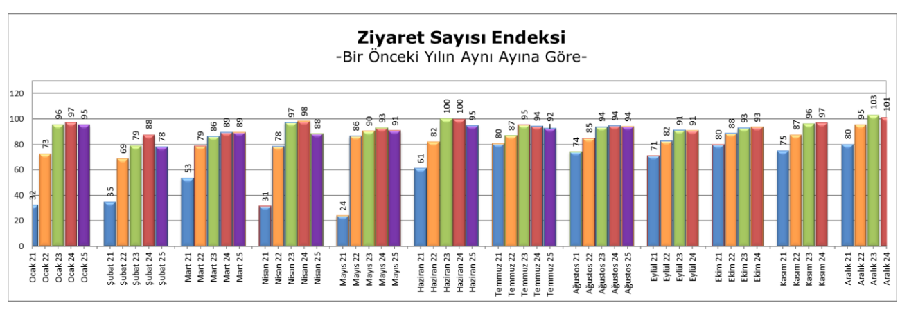 Ağustos 2025 verileri bir önceki yılın aynı ayı ile karşılaştırıldığında ziyaret sayısı endeksinde değişim görülmemiştir.