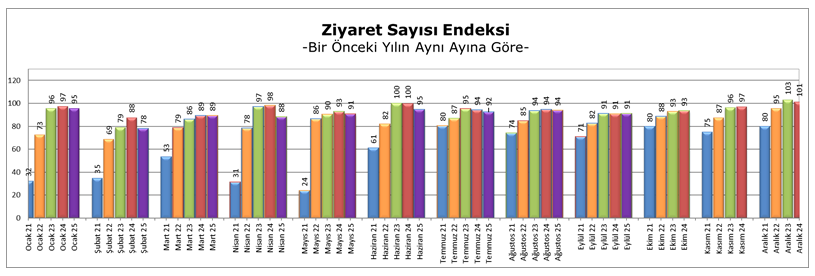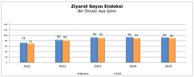 Eylül 2025 verileri bir önceki yılın aynı ayı ile karşılaştırıldığında ziyaret sayısı endeksinde değişim görülmemiştir.