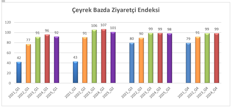 Ziyaret sayısı endeksinde üçüncü çeyrek bazında geçtiğimiz yılın aynı dönemiyle karşılaştırıldığında yüzde -1’lık azalış görülmüştür.