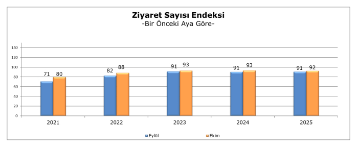 Ekim 2025 verileri bir önceki yılın aynı ayı ile karşılaştırıldığında ziyaret sayısı endeksinde yüzde 1 oranında azalış olduğu gözlemlendi.