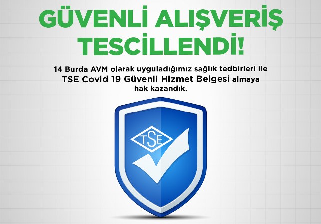Normalleşme döneminin başlamasıyla birlikte 1 Haziran’dan itibaren yeniden kapılarını açan, tüm tedbirlerin hassasiyet ile uygulandığı, AVM ziyaretçilerinin ve çalışanların sağlığına maksimum özen gösteren 14 Burda AVM, Bolu’nun TSE COVID-19 Güvenli Hizmet Belgesi’ne sahip ilk ve tek alışveriş merkezi oldu.