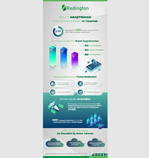 Redington Türkiye’nin araştırmasına göre bulut alanında yatırım yapmayı planlayan şirketler için öncelikli alanlar arasında kurumsal kaynak planlaması (ERP), felaket kurtarma ve veri depolama çözümleri öne çıkıyor. 500 ve üzeri çalışanı olan şirketlerde ise güvenlik çözümleri ve veri yedekleme en kritik yatırım başlıkları olarak belirlenmiş durumda. İşletmeler, operasyonel sürekliliği sağlamak ve siber tehditlere karşı dayanıklılıklarını artırmak amacıyla bu alanlara öncelik veriyor.