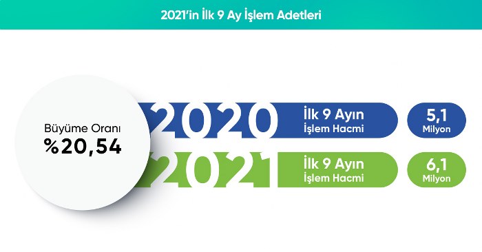 Yılın başında 55 milyar olarak öngördüğümüz işlem hacminin, yılın ilk 9 ayında 42,4 milyarını gerçekleştirdik.