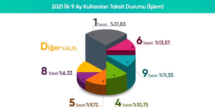 Bankaların taksit uygulamalarındaki sınırlamaların etkisi ile 2 taksitli işlemler önceki döneme göre azalırken, 5 ve üzeri taksitli işlemlerde artış yaşandı.