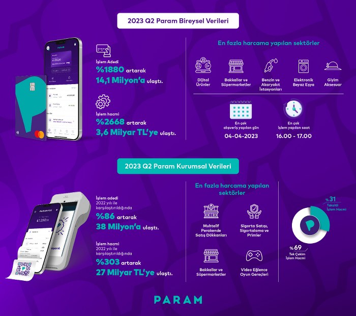 ParamKart ve ParamPOS ürünleri, 2023 yılının ikinci çeyreğinde kaydedilen rekor büyüme oranlarıyla sektöre öncülük etmeyi sürdürüyor.