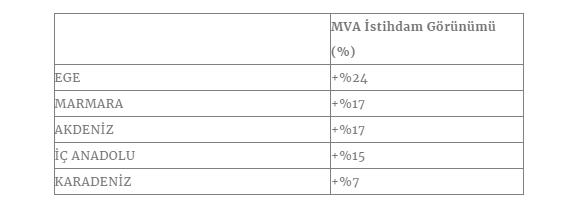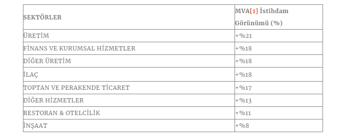 Son üç yılın en olumlu istihdam beklentisini ortaya koyan rapora göre Üretim sektörü mevsimsel verilerden arındırılmış +%21 istihdam görünümüyle en olumlu istihdam beklentisini sergileyen sektör oldu.