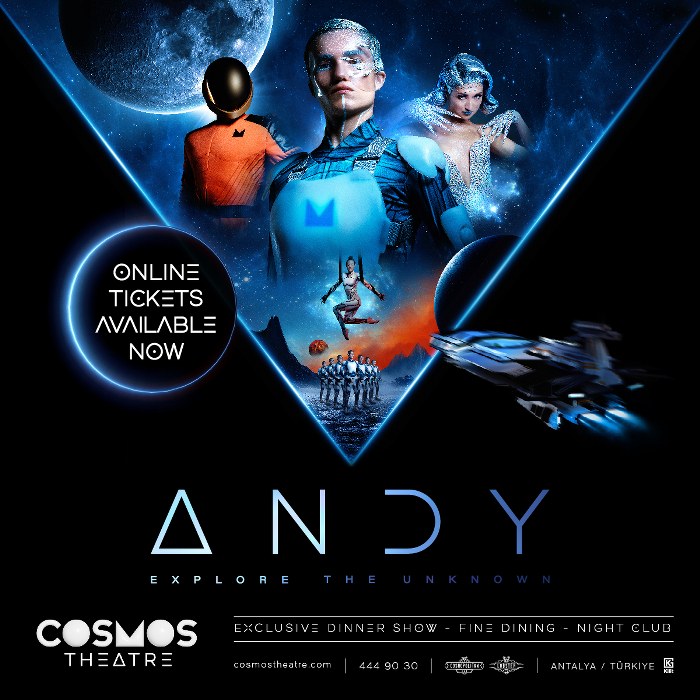 Yeni nesil müzikli tiyatro gösterisi “ANDY”, Kilit Grup bünyesinde Antalya’da açılan eğlence ve gastronomiyi bugüne dek görülmemiş bir konsept ile birleştiren gösteri merkezi Cosmos Theatre’da izleyicisiyle buluşacak.
