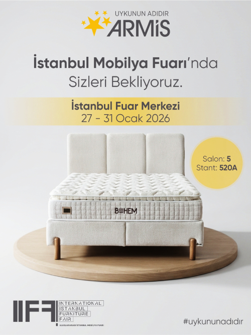 Avrupa’nın en büyük mobilya fuarı olan Uluslararası İstanbul Mobilya Fuarı, 27–31 Ocak 2026 tarihleri arasında dünyanın dört bir yanından binlerce alıcının katılımıyla gerçekleştirilecek. Kullanıcı ihtiyaçlarına yanıt veren ürünlerinin yanı sıra ev tekstili ve döşemeli ürün gruplarıyla öne çıkan Armis, İstanbul Fuar Merkezi’nde (Yeşilköy) 5. Hol 520/A numaralı stantta ziyaretçilerini ağırlayacak.