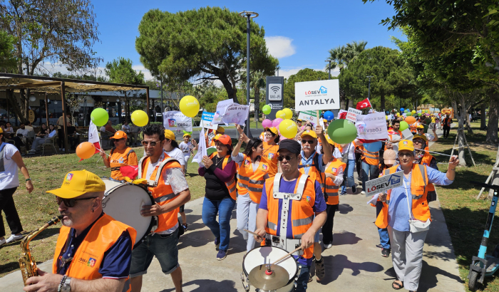 Uluslararası Lösemili Çocuklar Haftası kapsamında, Antalya Konyaaltı Beach Park’ta özel bir kortej düzenlendi. Bando eşliğinde şarkılar söylenerek oluşturulan korteje, LÖSEV’e kayıtlı çocuklar, yetişkin hastalar, aileleri ve gönüllüler eşlik etti. Uçan balonuyla korteje katılanlar, yürüyüşün sonunda Olbia Kent Meydanı’nda ellerindeki balonları, tüm çocuklar iyileşsin diyerek gökyüzüne bıraktılar.