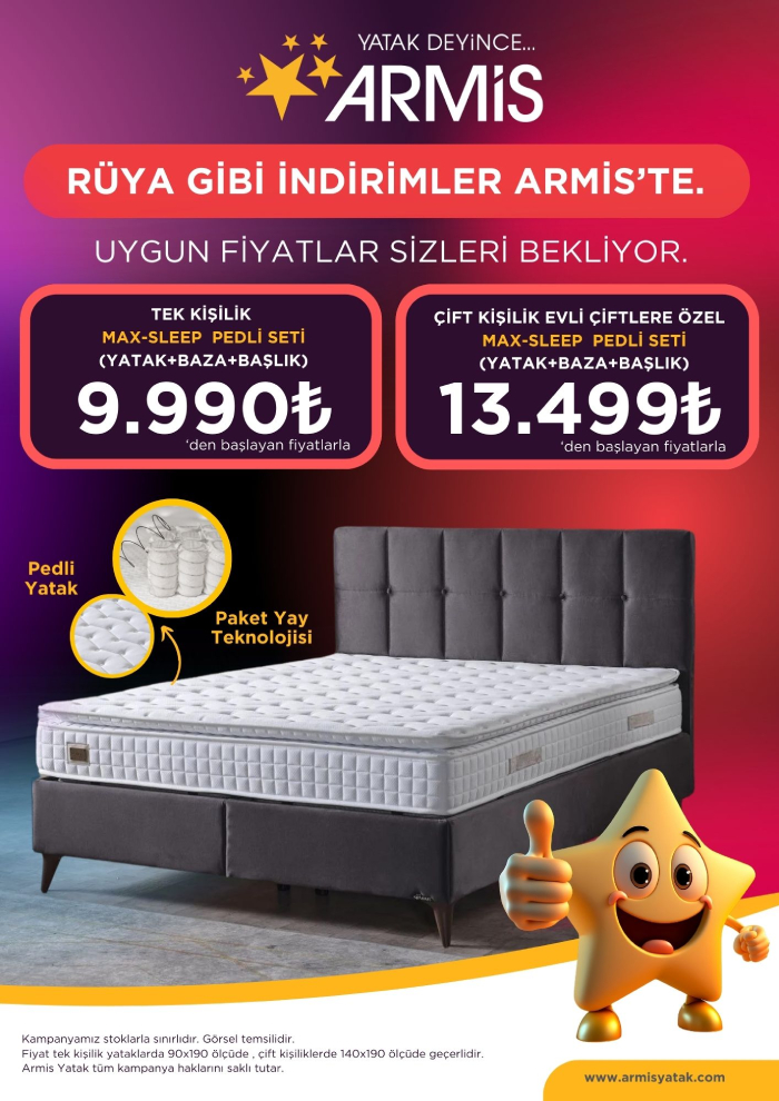 Yuvanıza yakışır bir başlangıç yapmak için Armis’in sınırlı stokta satışa sunduğu kampanya ürünü, Armis Yatak noktalarında 9.990 TL’den başlayan fiyatlarla satışa sunuluyor.