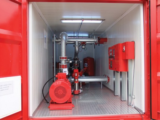 Özellikle konteyner tipi yangın sistemi, binalar için paket çözümler sunuyor.