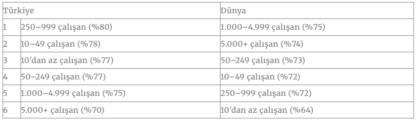 Şirket büyüklüğüne göre yetenek açığı sıralamasında ülkemizde ilk sırada çalışan sayısı 250-999 olan şirketler yer alırken dünyada listenin başında çalışan sayısı 1.000-4.999 olan şirketler bulunuyor.