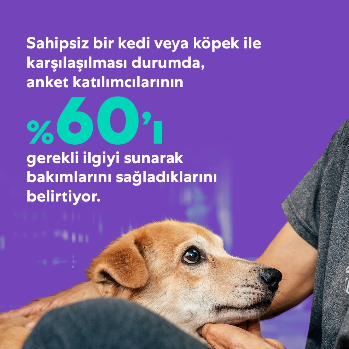 - Sahipsiz bir kedi veya köpek ile karşılaşılması durumda, anket katılımcılarının yüzde 60’ı gerekli ilgiyi sunarak hayvanların bakımlarını sağladıklarını belirtiyor.