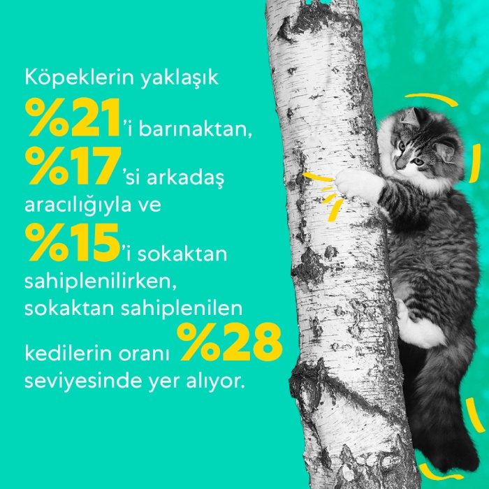 - Köpeklerin yaklaşık yüzde 21’i barınaktan, yüzde 17’si arkadaş aracılığıyla ve yüzde 15’i sokaktan sahiplenilirken, sokaktan sahiplenilen kedilerin oranı yüzde 28 seviyesinde yer alıyor.