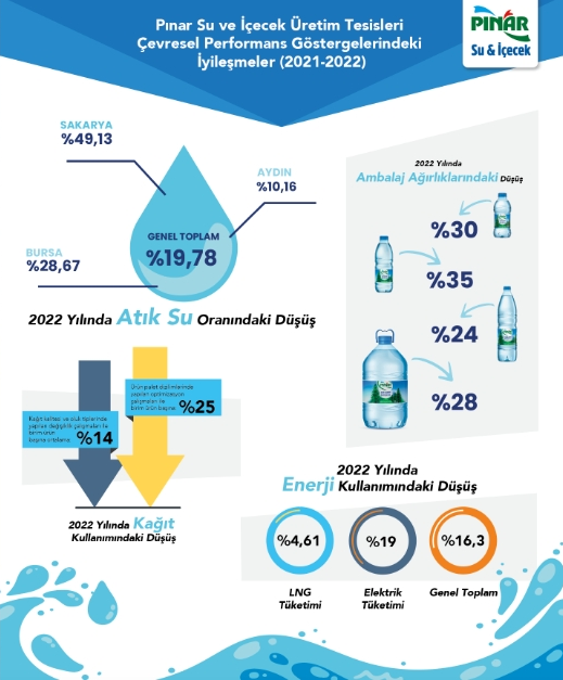 38 yıldır her bir damlaya sahip çıkmak için çaba gösteren ve her yıl su verimliliği çalışmaları kapsamında attığı adımları paylaşan Pınar Su ve İçecek, Dünya Su Günü vesilesiyle üretim hattı yıkamaları, evsel kullanım alanları ve dolum firelerinin azaltılmasına yönelik yaptığı iyileştirmeler sonucunda 2022 yılı toplam atık su miktarını, 2021 yılına göre %19,78 düşürdüğünü açıkladı.