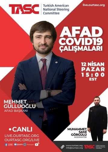 Türk Amerikan Yönlendirme Komitesi (TASC), Covid-19 salgınında Türkiye'de yapılan çalışmalar ve Amerika Birleşik Devletleri'nin mücadele yöntemleriyle ilgili olarak Afet ve Acil Durum Başkanı Mehmet Güllüoğlu'yla son durum değerlendirilecek.