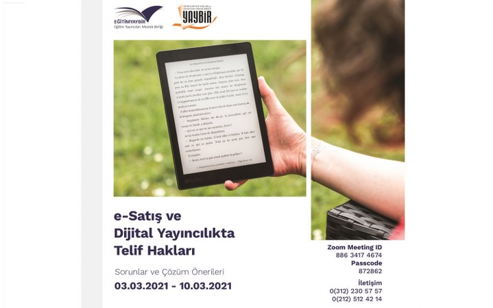 Yayıncılık dünyası bu alanlardaki sorunları masaya yatırmak üzere bir araya geldi. Pandemi koşulları nedeniyle online olarak düzenlenen “e-Satış ve Dijital Yayıncılıkta Telif Hakları-Sorunlar ve Çözüm Önerileri” konulu panelin yürütücülüğünü Yayıncılar Telif Hakları ve Lisanslama Meslek Birliği YAYBİR ve Eğitim Yayıncıları Meslek Birliği EĞİTİM YAYBİR üstlendi.