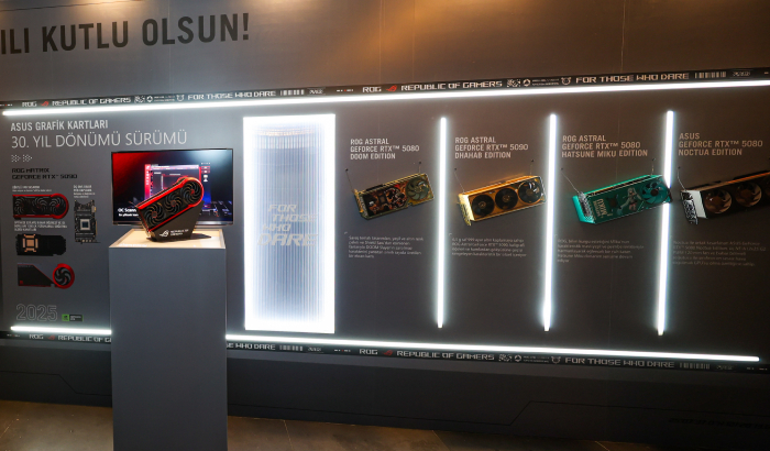 Etkinlik alanında kurulan özel müze duvarı, ASUS'un grafik teknolojilerindeki 30 yıllık mirasını gözler önüne serdi. Ziyaretçiler, Matrix 4090 ve Matrix 5090 gibi ikonik modellerin yanı sıra, ROG Strix 5080'in özel sürümleri ile DOOM Edition, Hatsune Miku Edition, Dhabab Edition ve Noctua Edition gibi farklı ürün gruplarına ait tasarımları yakından inceleme fırsatı buldu. Sergilenen ekran kartları arasında sektörde bir ilki gerçekleştiren eski modeller de yer aldı.