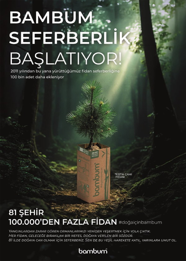 Doğaya ve sürdürülebilirliğe verdiği önemle öne çıkan Bambum, 100 bin fidan dağıtımında bulunuyor. Türkiye’nin 81 ilinde bulunan Bambum yetkili bayilerinde ücretsiz bir şekilde temin edilecek fidanlarla, Türkiye’nin ormanlık alanları yeniden yaşam bulmaya hazırlanıyor.