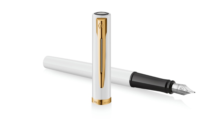 Saflığın ve özgüvenin simgesi beyazdan ilham alan tasarım; parlak lake kaplamalı gövdesi ve kapağıyla sade ama iddialı bir duruş sergiliyor. Geniş altın kaplamalı kapak halkası ve Waterman’ın imzası niteliğindeki çift kollu klips, kaleme sofistike bir karakter kazandırıyor.