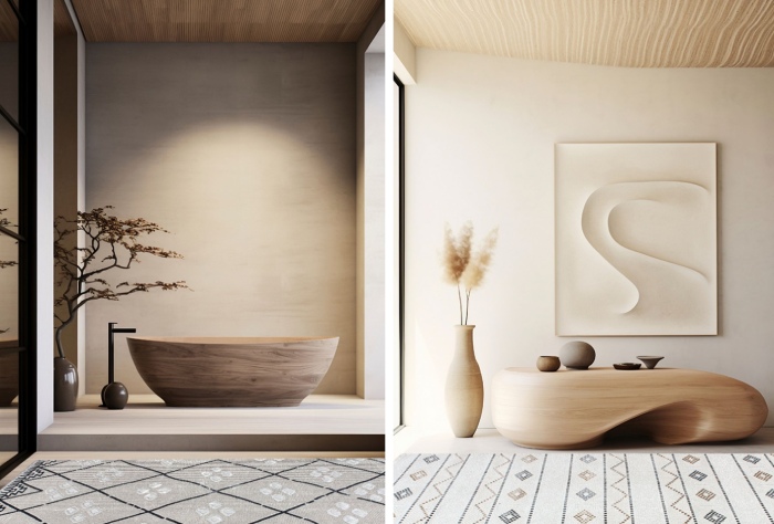 Soyut çizgilerin hakim olduğu ve daha çok soft renklerin ön plana çıktığı Cozy koleksiyonu, özel boyutlarıyla mekana göre uyum sağlarken, İskandinav minimalizmi ve sakin renk paletleriyle birleşerek huzur ve dinginlik hissi yaratıyor.