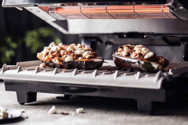 Pişirme tabağını ızgaranın altına yerleştirip, kapağı kapatın. Pişirme süresini 20 dakika ve sıcaklığı 190°C'ye ayarlayın. Peynir eriyip altın rengine gelene kadar pişirin.