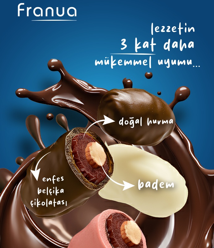 Doğal içerikleriyle öne çıkan Franua, en kaliteli hurmaları badem ve gerçek Belçika çikolatasıyla buluşturarak Türkiye atıştırmalık pazarına güçlü bir giriş yaptı. Marka, doğallık ve rafine lezzeti bir arada sunarak atıştırmalık kategorisine yeni bir yorum kazandırıyor.