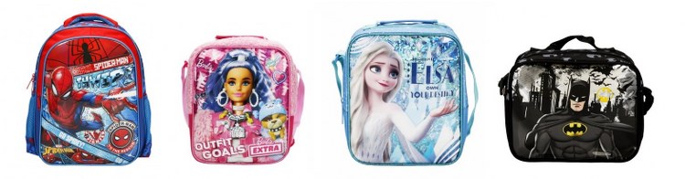 Barbie, Frozen, Batman, Spiderman, Mickey ve Minnie Mouse, Harry Potter, LOL, Paw Patrol, ve Cars lisanslı çocukların en sevdiği çizgi film karakterleri okul yolunda çocuklara eşlik etmek için bekliyor.