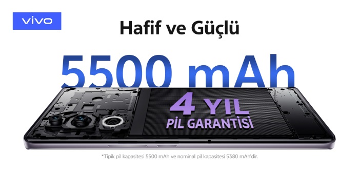 1.600 şarj ve deşarj döngüsünden sonra bile sağlık düzeyi yüzde 80'in altına düşmüyor. Türkiye'de pil sağlığı takip fonksiyonuna sahip ilk Android akıllı telefon markası olan vivo, V40 için dört yıl boyunca geçerli, pil sağlığı yüzde 80'in altına düşerse ücretsiz değişim garantisi de sunuyor.