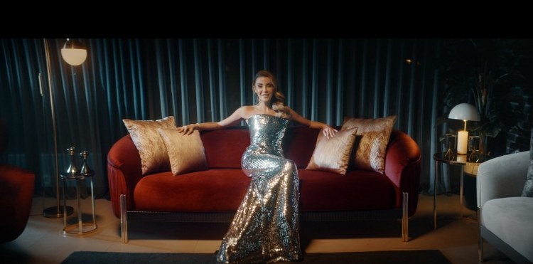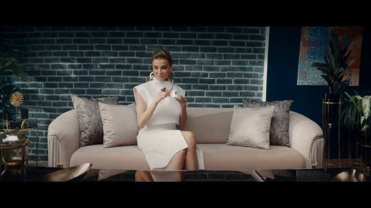 Weltew Home’un “usta işi” en yeni mobilya tasarımlarının tanıtıldığı filmde, her koleksiyona uygun bir kostümle gördüğümüz güzel oyuncu, reklam filminin oturma odası sahnesinde iddialı beyaz elbisesiyle göz doldururken, yatak odası sahnesinde ise saten pijamasıyla oldukça şık görünüyor.