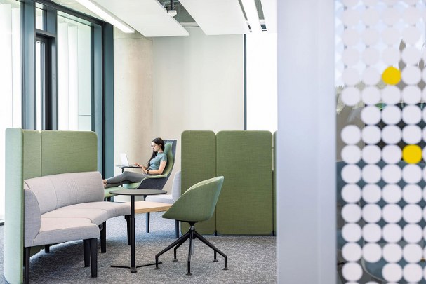 Tüm binanın tasarımı ve teçhizatı, ultra modern ofis ekipmanı, özel iletişim ve iş birliği alanları ve çalışanların ağ kurabileceği ve fikirlerini paylaşabileceği noktalar, New Work'e oldukça uygun.