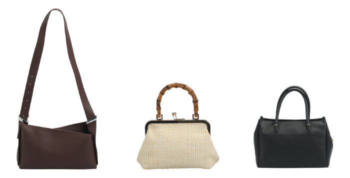 Dayanıklı sentetik deriler, file detaylar ve hasır dokular, koleksiyonun öne çıkan materyalleri arasında yer alıyor.