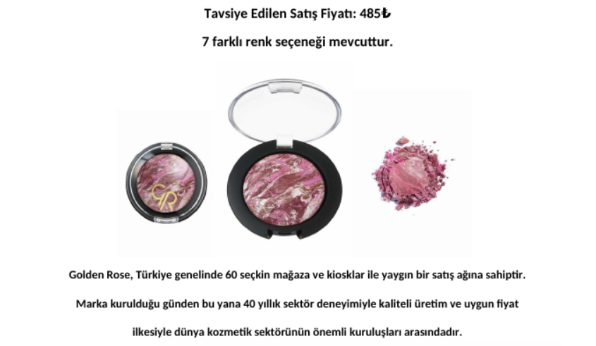Makyaj çantanızın favorisi olmaya aday Golden Rose Baked Blush On, yüzünüze ışıltılı ve etkileyici bir dokunuş katmak için ideal bir seçenek!