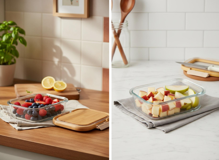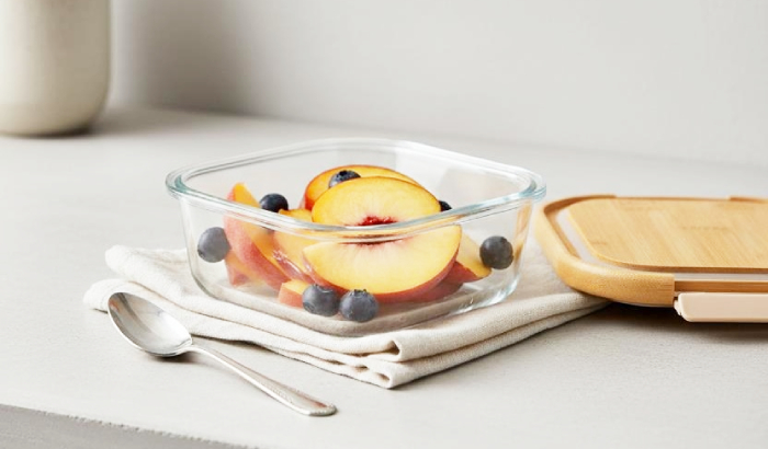 Doğal bambu malzemeden üretilen kapaklar, dayanıklı yapısıyla uzun ömürlü kullanım sağlarken; cam yüzeyin kolay temizlenebilir özellikli hijyenik bir saklama alanı sunuyor.
