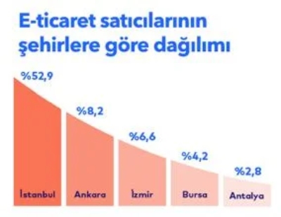 İstanbul, satıcıların yarısından fazlasını bünyesinde bulundurarak, satıcıların şehirlere göre dağılımında açık ara farkla ilk sırada yer aldı.