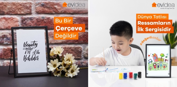 Ürünlerin temsil ettiği bu anları aktarmak için, “Çerçeve sadece bir çerçeve midir, yoksa mutlu aile fotoğraflarının sergilendiği bir alan mıdır?” diye soran Evidea, ürünlerin ifade ettiği anlamlarına odaklanıyor.