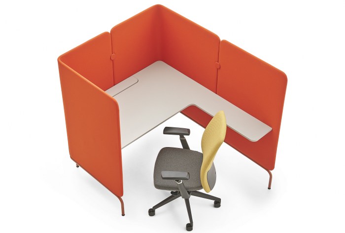 Endüstriyel Ürün Tasarımcısı Alp Nuhoğlu imzası taşıyan Park çalışma grubu, etrafında yer alan ve akustik kumaşlarla kaplı paneller sayesinde sessiz bir çalışma ortamı sunarken, fiziki izolasyon da sağlıyor.