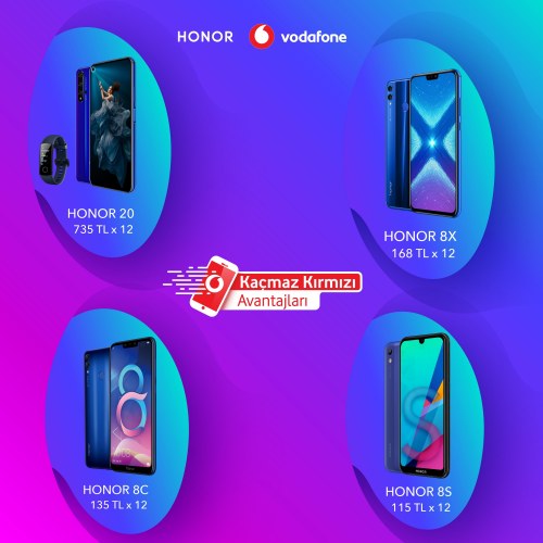 HONOR, Vodafone ile olan işbirliği kapsamında 5 cihazıyla birlikte Vodafone Kaçmaz Kırmızı Günleri kampanyasında. HONOR 20, HONOR 8X, HONOR 8C ve HONOR 8S Efsane Günler kampayasına özel fırsatlarla Vodafone Mağazaları ve Vodafone Online Mağaza’da.