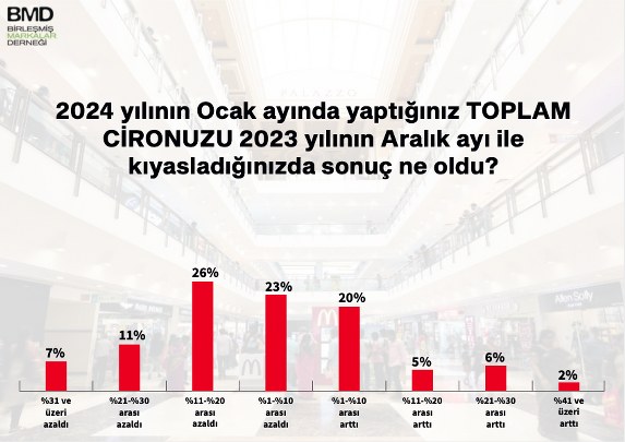 Ankete katılan üye markaların üçte ikisinin Aralık ayına göre Ocak’ta hem adet satışının hem de cirosunun gerilediğini bildiren Öncel, şöyle devam etti: