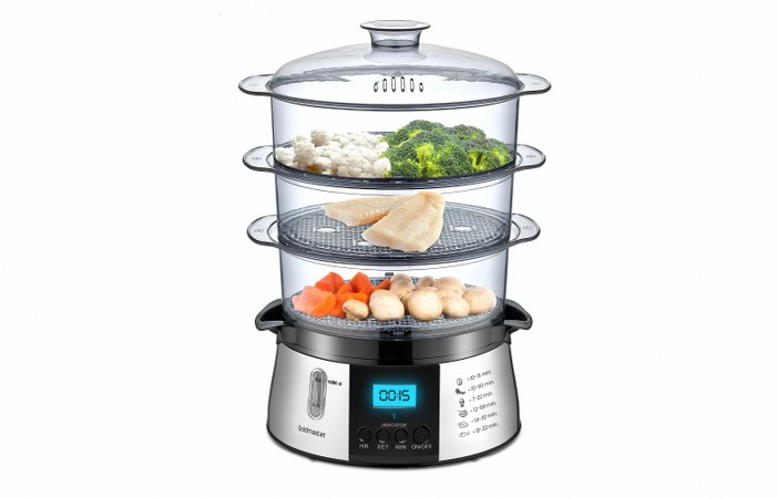 Üç hazneli geniş kapasitesiyle üç farklı lezzeti aynı anda ve kolayca hazırlayabileceğiniz Goldmaster Dietist Buharlı Pişirici, kokuların birbirine karışmasına izin vermiyor ve gıdaların besin değerini koruyor.