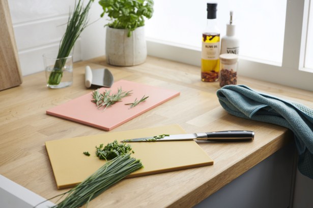 İki yüzünü de kullanabileceğiniz kesme tahtası da malzemeleri düzgün ve kolay bir şekilde kesmek için en iyi yardımcınız.