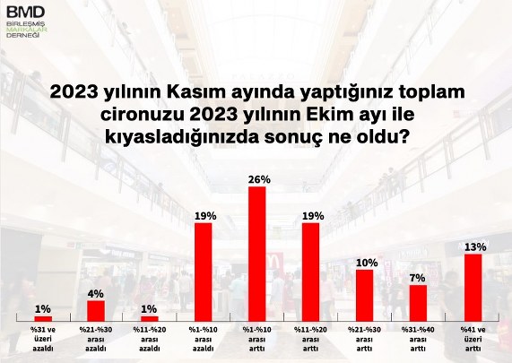 Birleşmiş Markalar Derneği’nin (BMD) üyeleri arasında yaptığı Kasım ayı anketinin sonuçları kamuoyu ile paylaşıldı. Anketi değerlendiren BMD Başkanı Sinan Öncel, birçok marka için Kasım ayında satışların beklentilerin altında kaldığını söyledi. Öncel, şöyle devam etti: