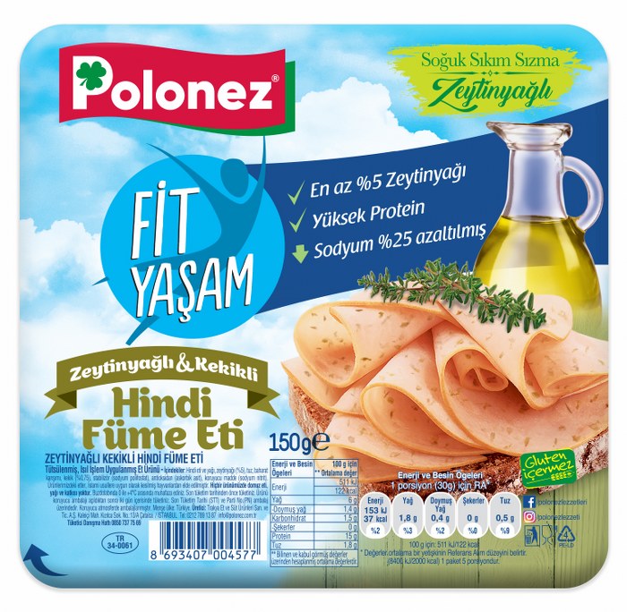 Polonez, yüksek protein, düşük yağ ve yüzde 25 daha az sodyum içeren Fit Yaşam ürünlerine bir yenisini daha ekledi. Soğuk Sıkım Sızma Zeytinyağı ve kekiği hindi fümede buluşturan lezzet, Türkiye’de ilk ve tek.