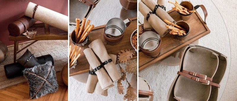 Deri puflar, sehpalar, deri servislikler&runnerlar, yastıklar, bardaklar ve karaflar, sunumluklar, deri peçete halkaları, çerezlikler, buz kovaları, odunluklar, deri kumandalıklar ve daha birçok ürün ile paylaşacağınız anılara sıcak bir atmosfer katıyor.