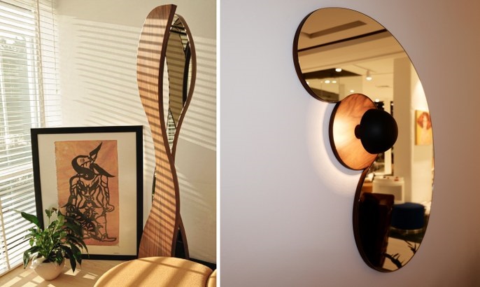 Akışkan bir forma sahip olan Fluid, ahşap, ayna ve apliği bir araya getiriyor. Suyun akışkanlığında aşağı doğru akan bir aynanın apliğe tutunması ve adeta anda donup kalması fikri üzerine oturtulan tasarım, merak uyandırıcı bir görünüme sahip.